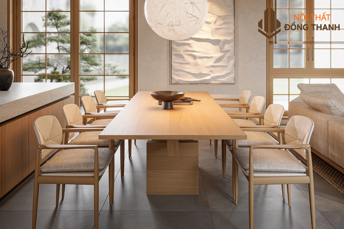 Bộ bàn ăn gỗ đơn giản, thiết kế nhẹ nhàng tự nhiên