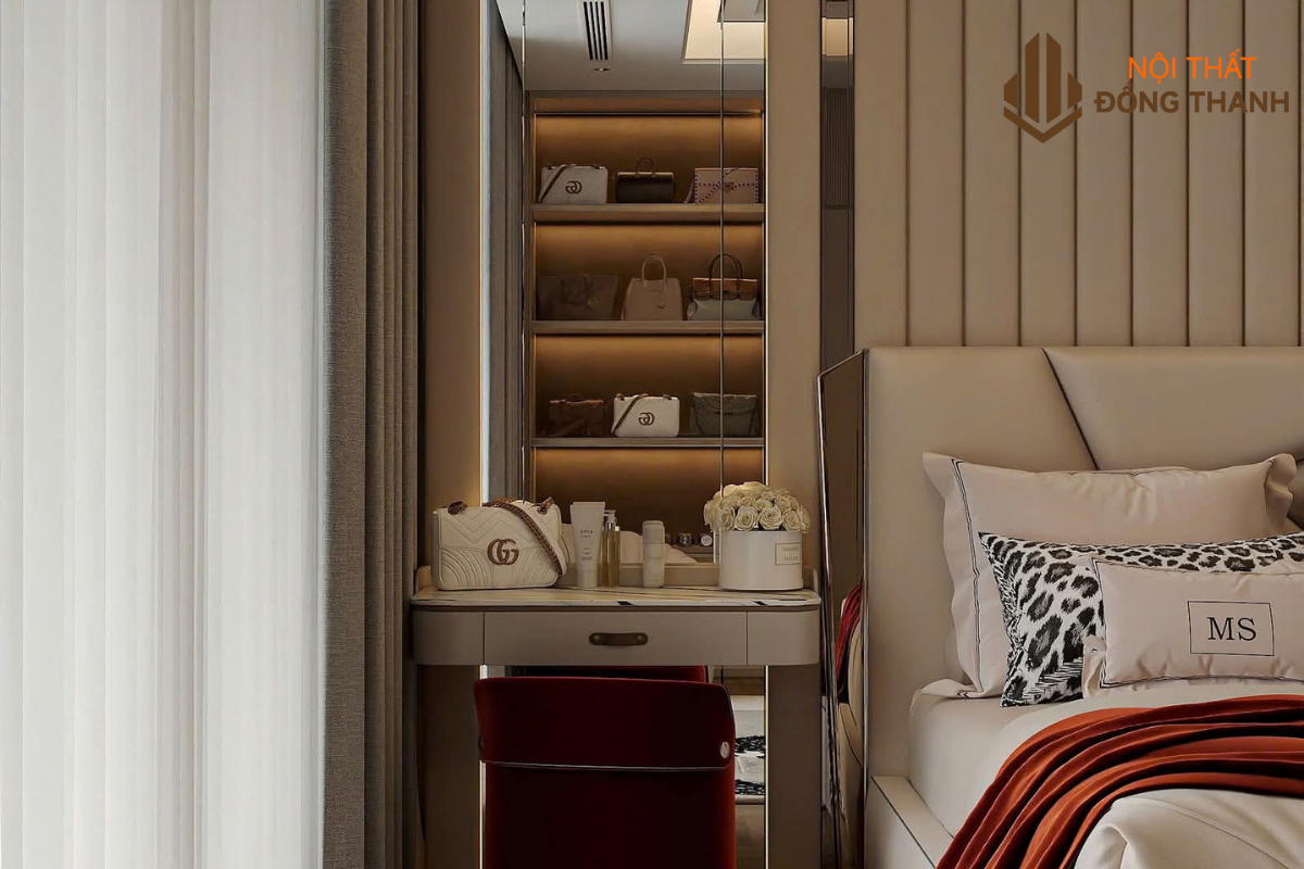 Tủ quần áo cùng bàn trang điểm bố trí gọn gàng