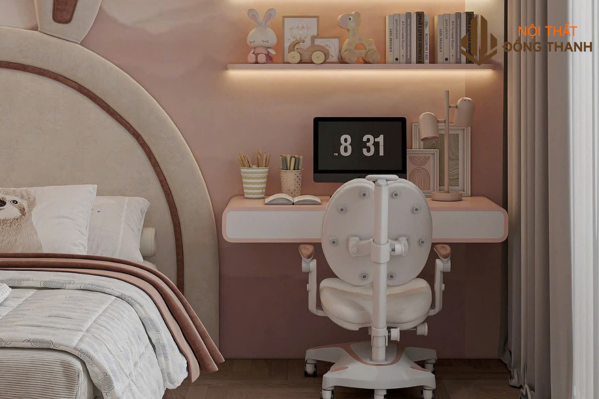 Giường ngủ, bàn học, tủ áo đều được thiết kế đồng bộ, với chất liệu và màu sắc được chọn lựa kỹ lưỡng để phù hợp với từng độ tuổi và sở thích – mang đến một không gian vừa đủ ấm áp.