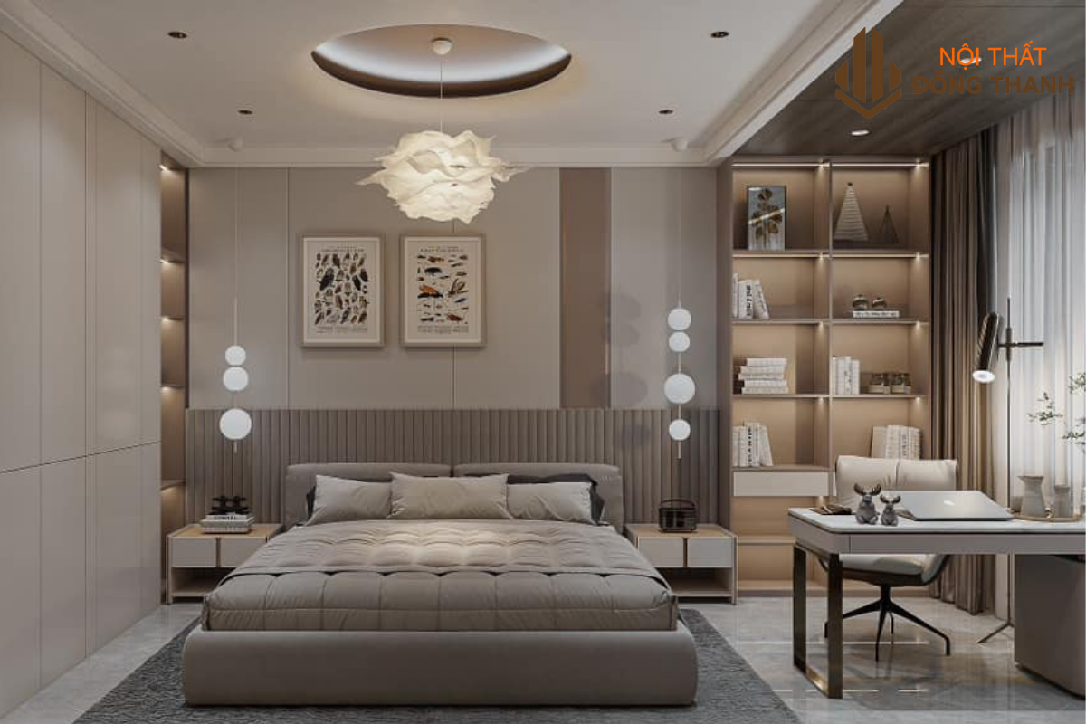 Phòng ngủ được đầu tư với đầy đủ công năng cần thiết