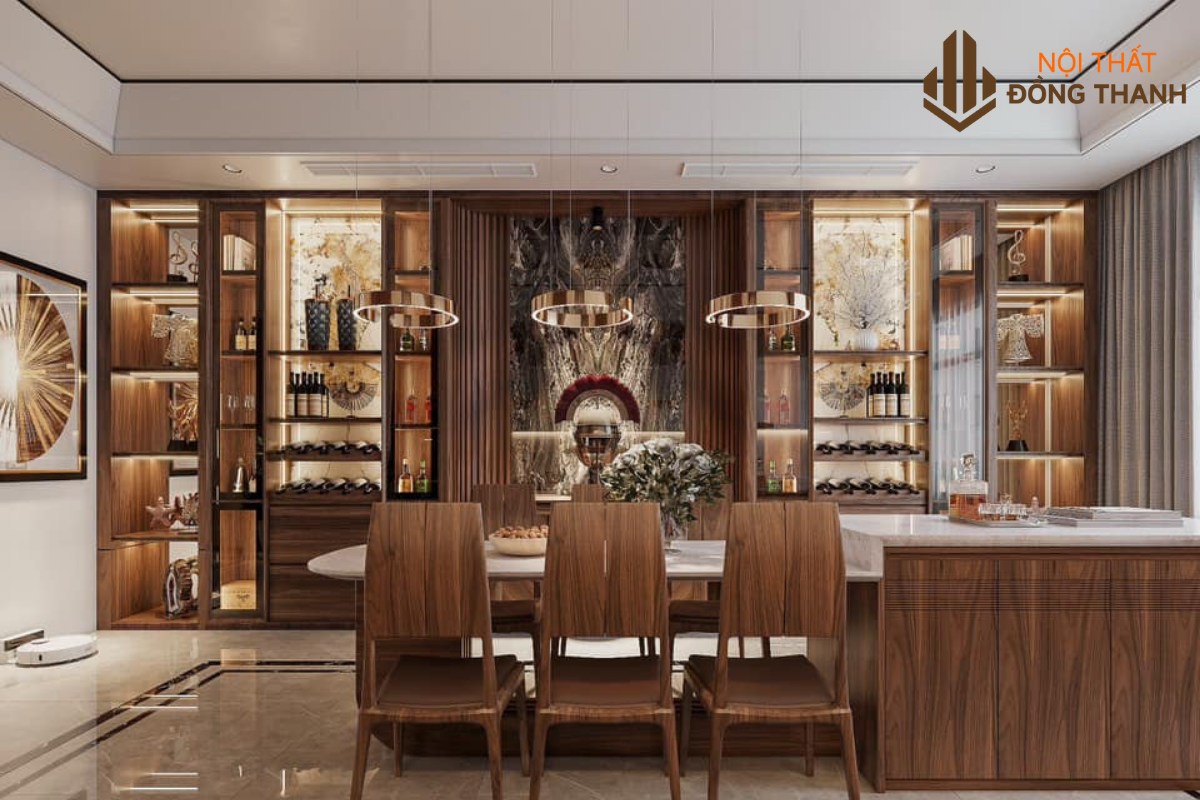 Thiết kế bàn ghế, tủ bếp, tủ rượu gỗ óc chó