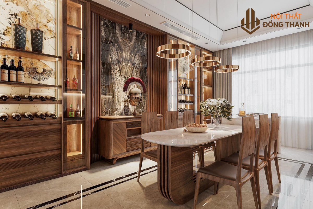 Thiết kế bàn ghế, tủ bếp, tủ rượu gỗ óc chó