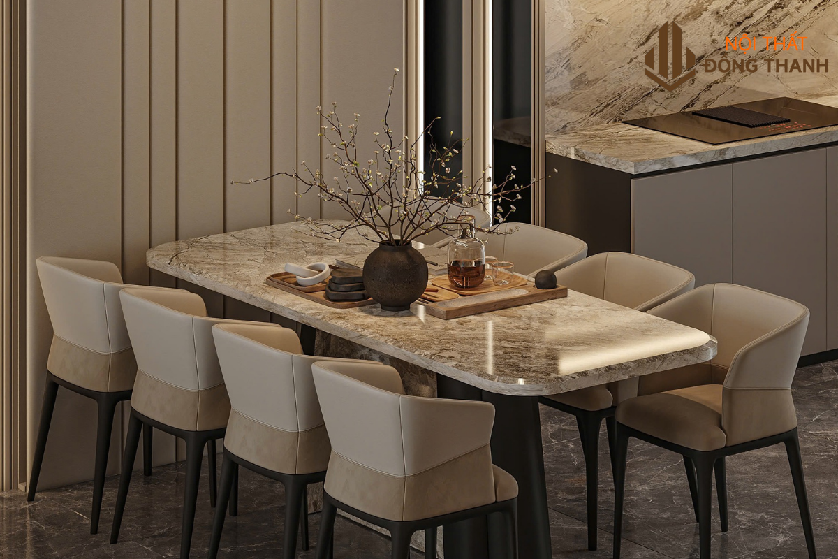 Bàn ăn sang trọng và hiện đại cho gia chủ
