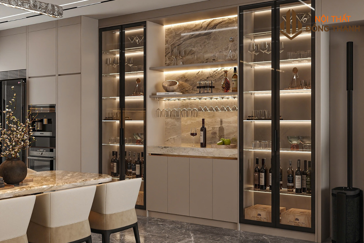 Tủ rượu thiết kế âm tường với đèn led tủ