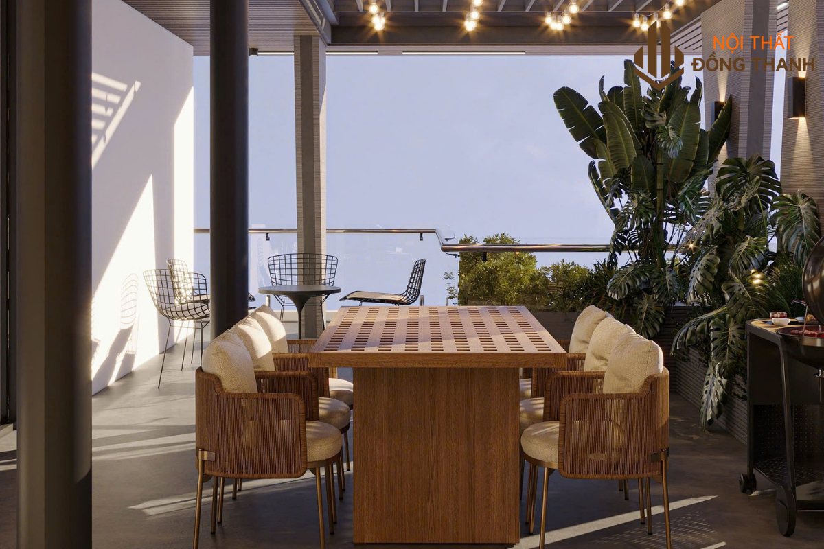 Không gian ban công rộng và thoáng, phù hợp với các buổi tiệc