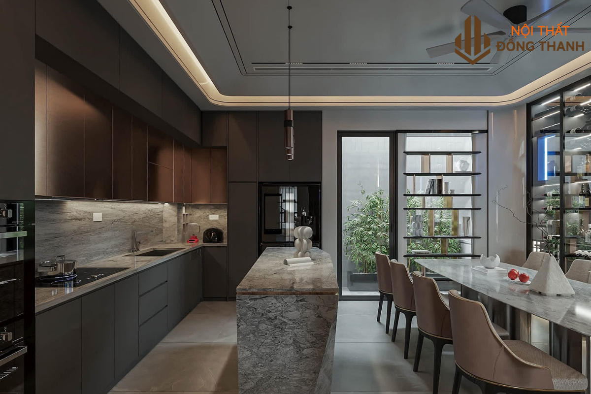 Bộ bàn ăn dài với mặt đá sang trọng